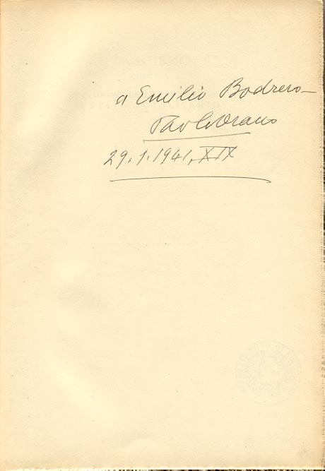 Dedica manoscritta dell'autore: a Emilio Bodrero / Paolo Orano / 29.1.1941, XIX.