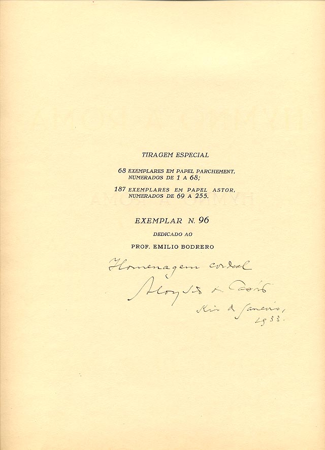 Dedica manoscritta del traduttore: Homenagem cordial / Aloysio de Castro / Rio de Janeiro, / 1933