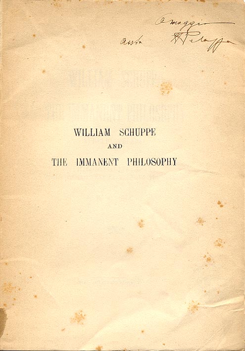 William Schuppe and the immanent philosophy : philosophical essay / by Aurelio Pelazza ; abridged and translated from the italian by E. C. Duc. - London : E. C. Duc, 1915