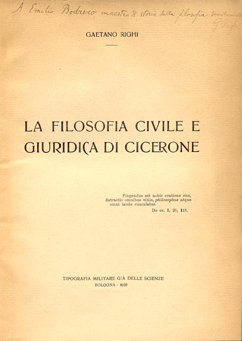 La filosofia civile e giuridica di Cicerone / Gaetano Righi. - Bologna : Tip. militare già delle scienze, 1930