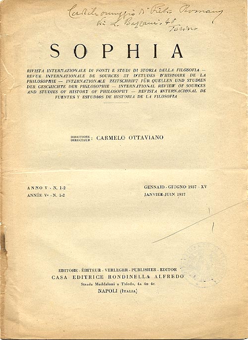 L'etat actuel de la philosophie en Italie / [Pietro Romano]. - Napoli : Rondinella, 1937