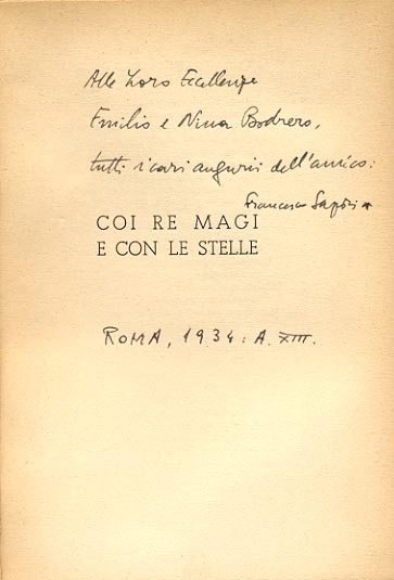 Dedica manoscritta dell'autore: Alle loro Eccellenze / Emilio e Nina Bodrero, / tutti i cari augurii dell'amico: / Francesco Sapori / ROMA, 1934 : A XIII