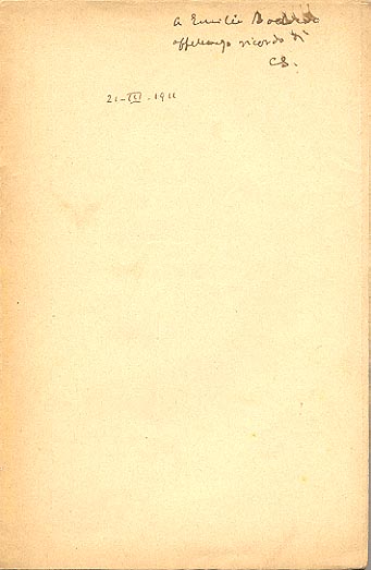 Dedica manoscritta dell'autore: A Emilio Bodrero / affettuoso ricordo di / C. S. / 21-III-1911.