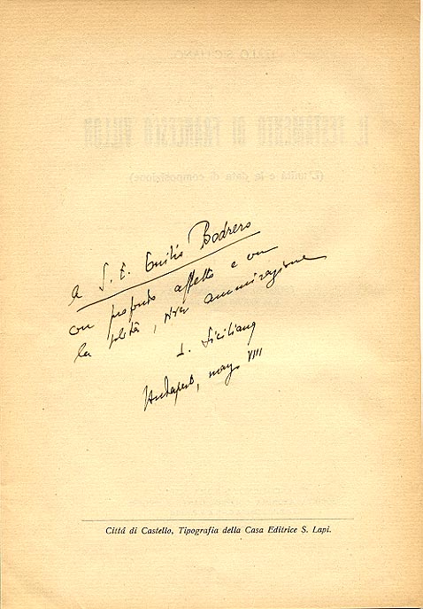 Dedica manoscritta dell'autore: a S. E. Emilio Bodrero / con profondo affetto e con / la [...], viva ammirazione / I. Siciliano / [ ...] may VIII