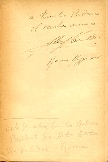 Dedica manoscritta dell'autore: a Emilio Bodrero / il vecchio amico / Alessandro Varaldo / Roma Maggio XIV