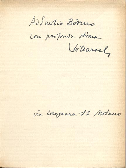 Dedica manoscritta dell'autore: Ad Emilio Bodrero / con profonda stima / G. Villaroel / Via Cicognara 11 Milano