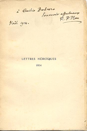 Dedica manoscritta del curatore: a Emilio Bodrero / Souvenir affectueuse / P.-P. Plan / Noel 1914.