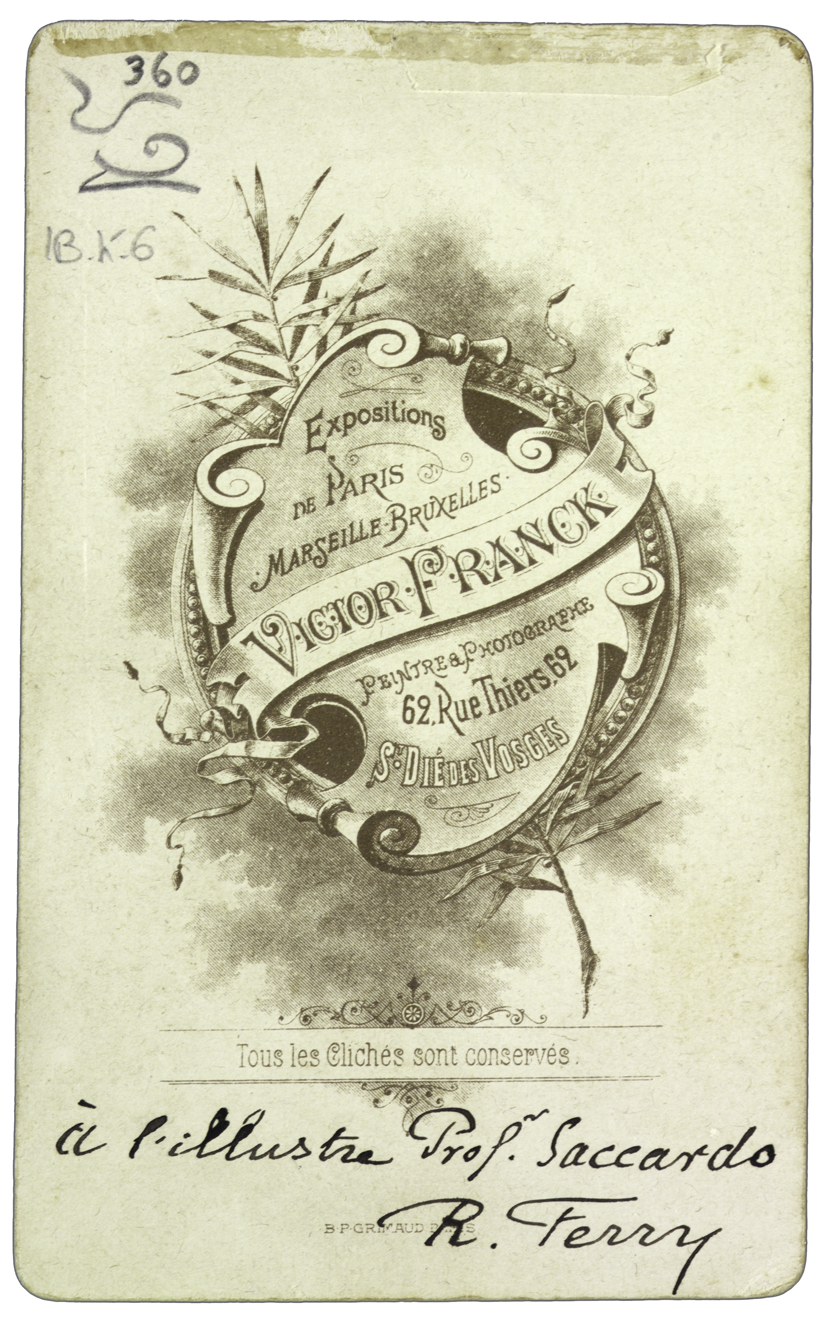 Titolo manoscritto sul recto. Nota manoscritta sul verso: A l’illustre Prof. Saccardo, R. Terry.