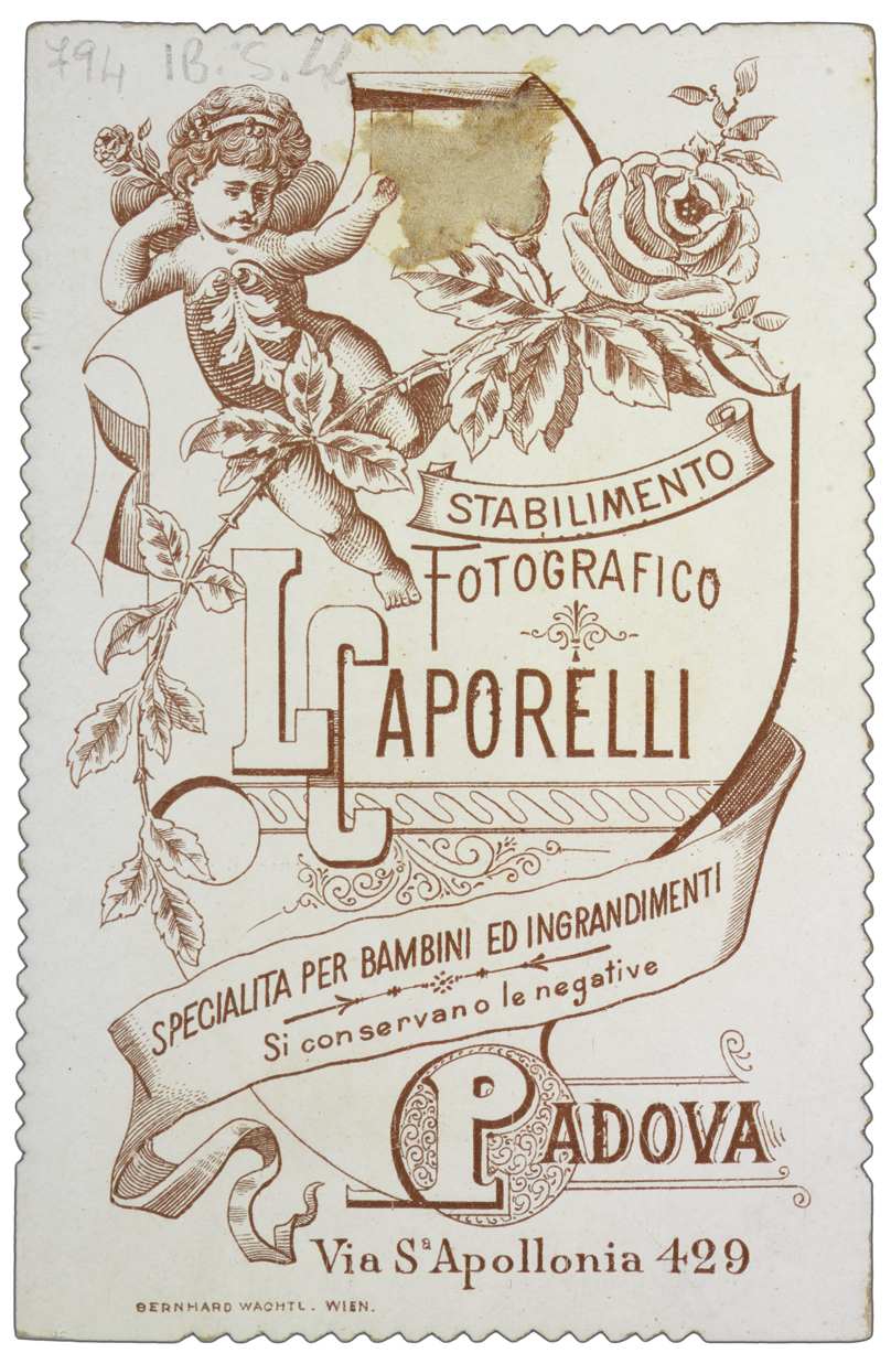 Titolo ed estremi cronologici riportati manoscritti sul recto, dove compaiono anche le note: fot. Squinabol 1899; da Racc. Benv. [Raccolta Benvenisti].