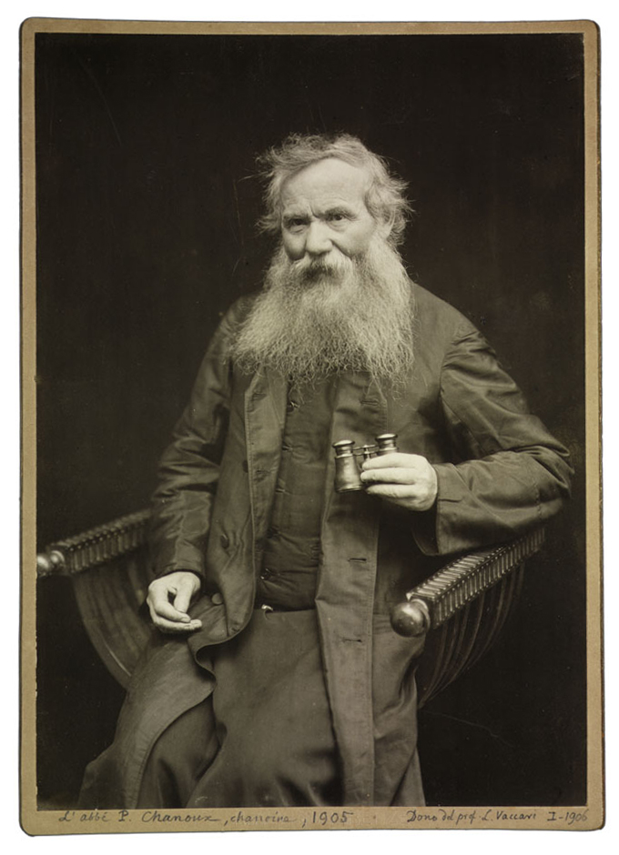 Nota manoscritta anche sul verso: L’abate Chanoux, Rettore dell’ospizio del Piccolo S. Bernardo, fondatore del Giardino alpino Chanousia (2200 m.) nell’ottobre 1905.