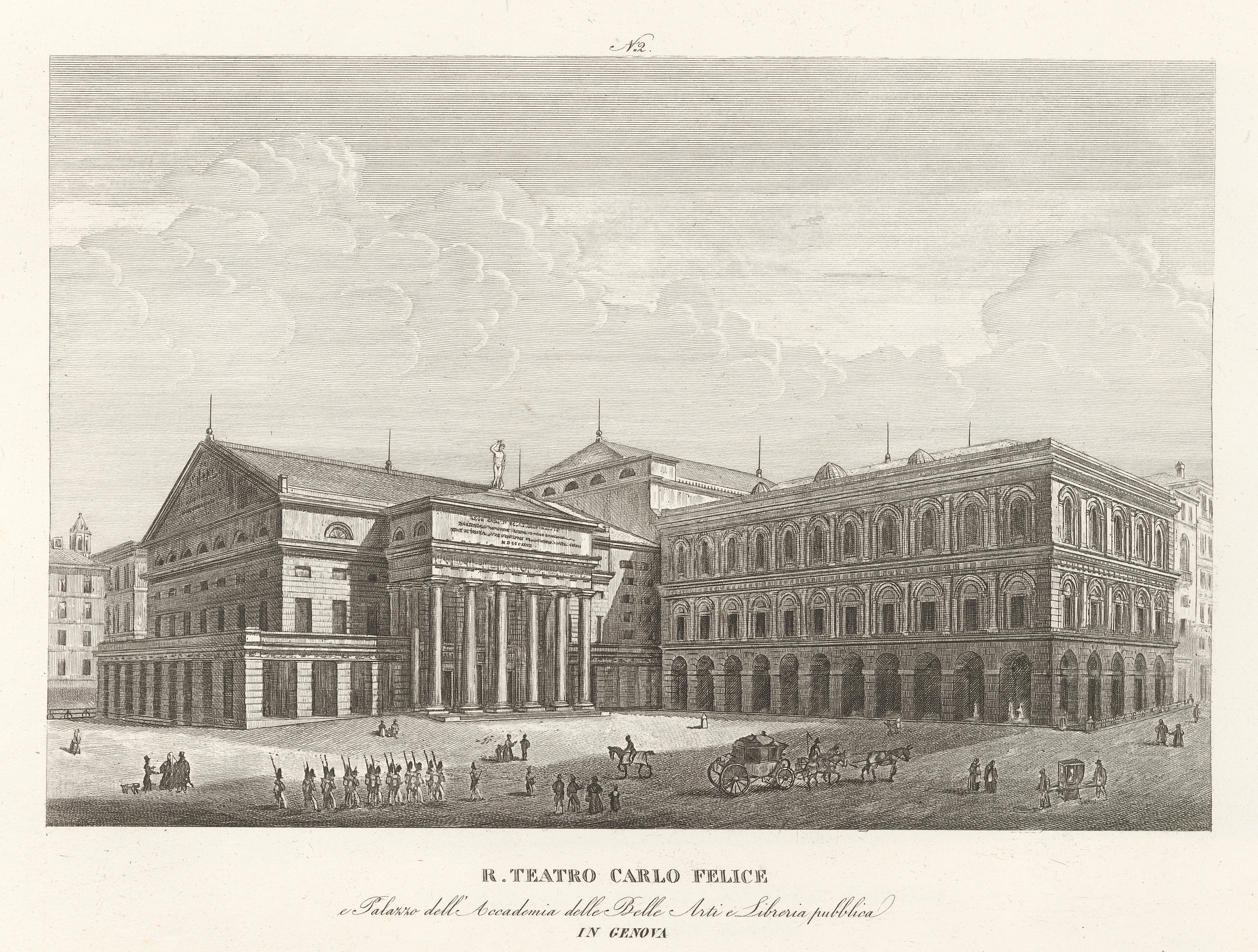 R. Teatro Carlo Felice e Palazzo dell'Accademia delle Belle Arti e Libreria Pubblica in Genova.