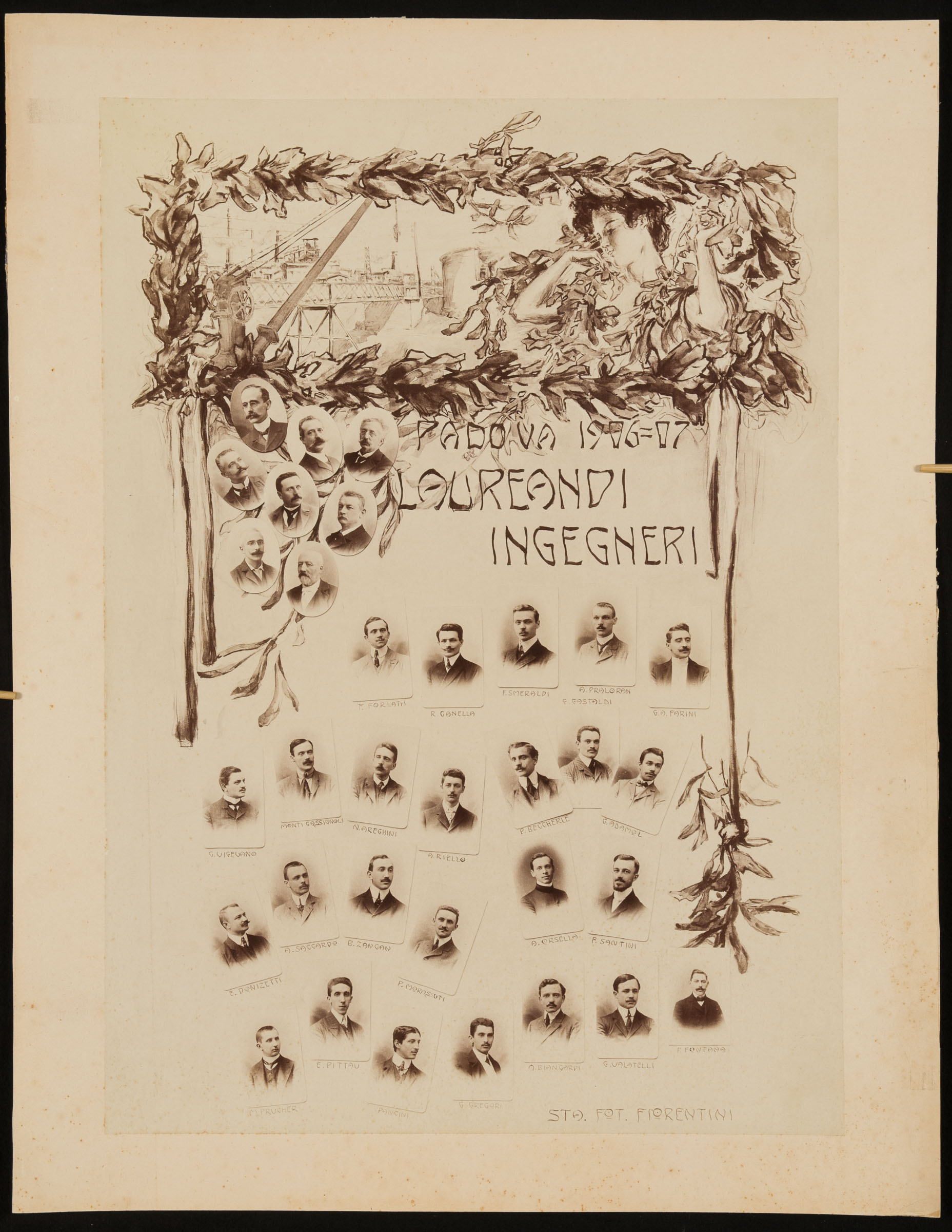 Stampa fotografica dei laureandi della Scuola di Ingegneria dell'Università di Padova, anno accademico 1906-07.