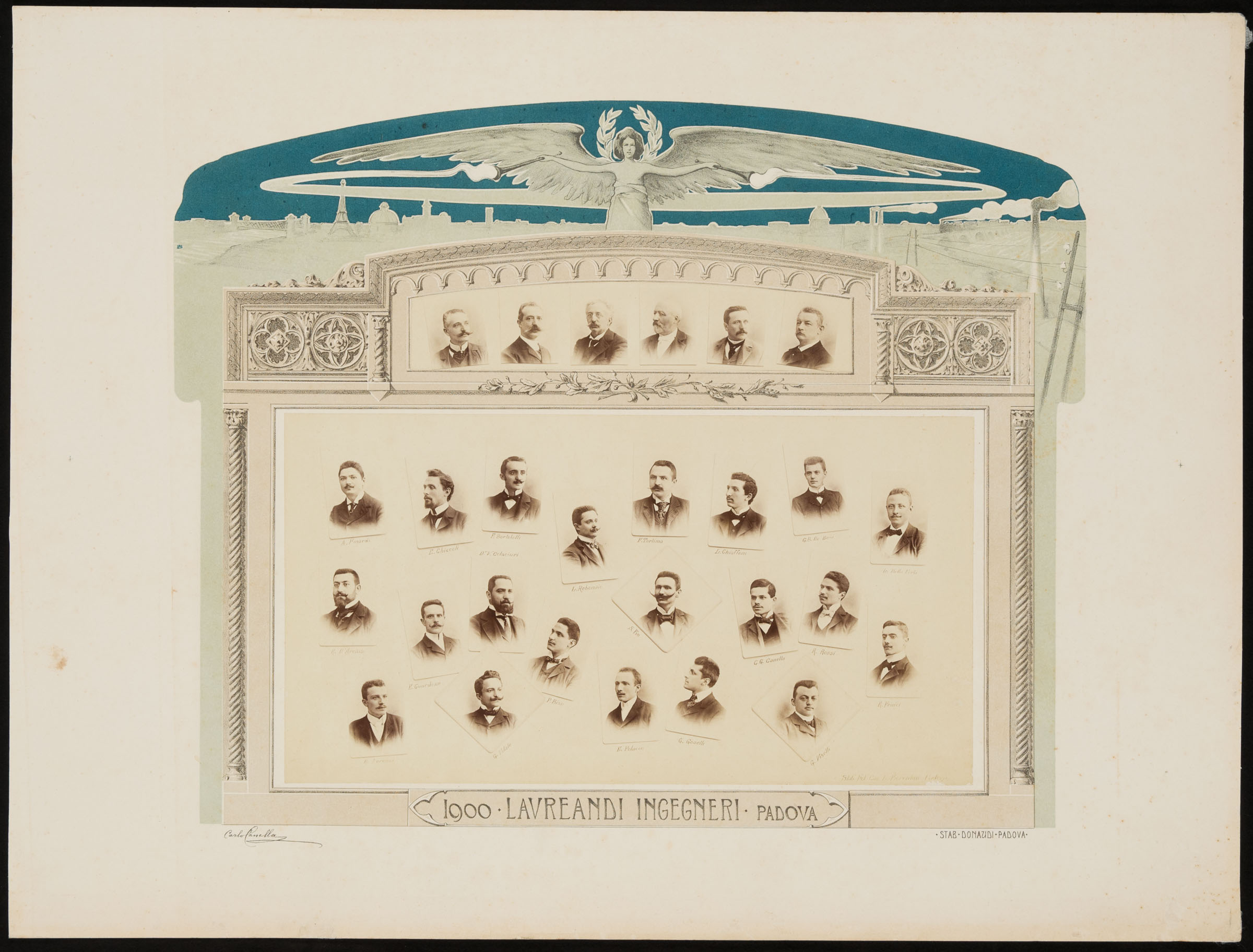 Stampa fotografica dei laureandi della Scuola di Ingegneria dell'Università di Padova, anno accademico 1900.
