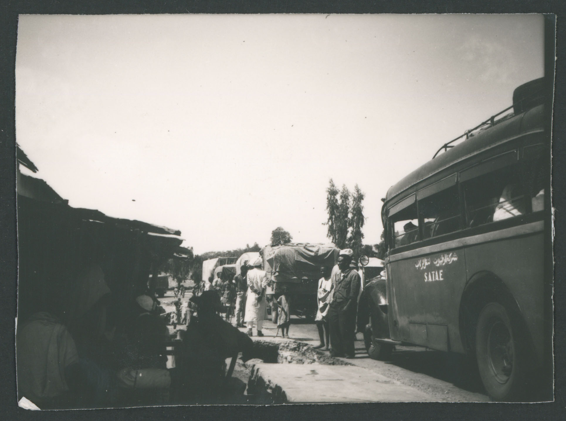 Autocarri e persone lungo una strada di Adi Ugri in Eritrea