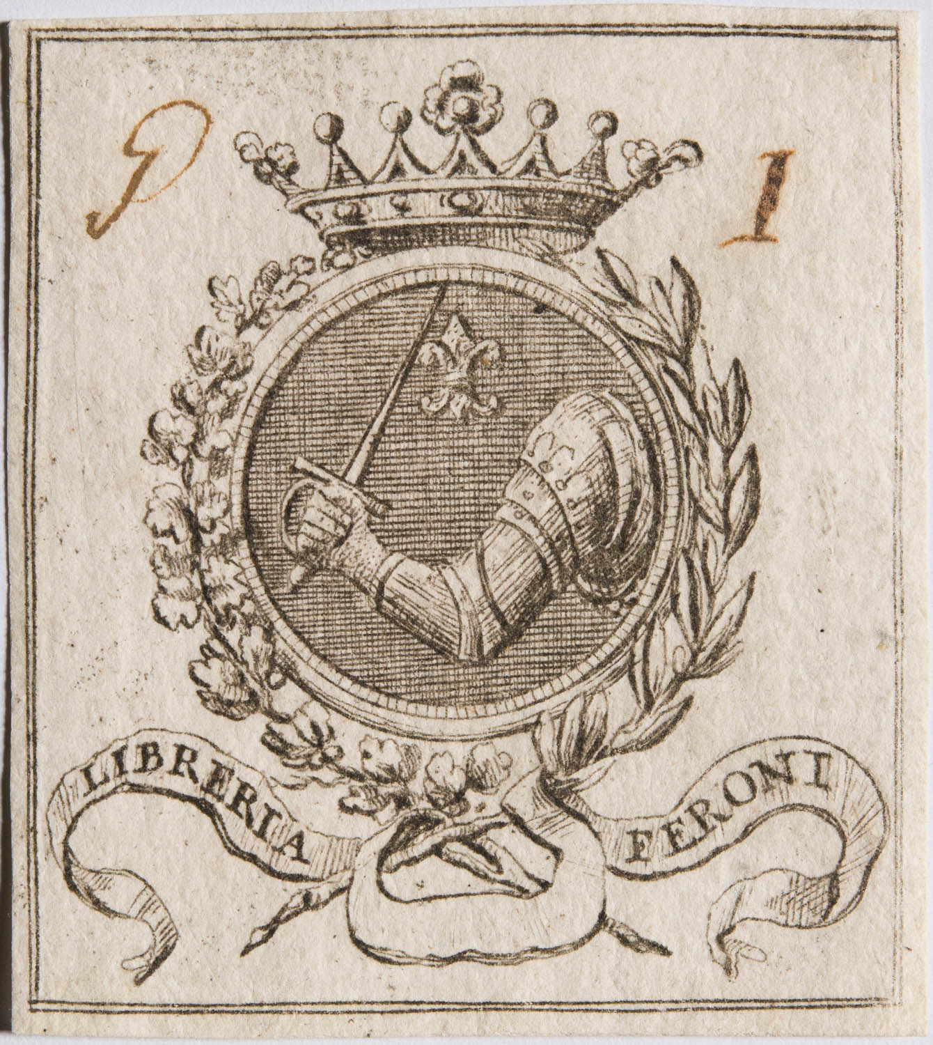 • ex libris, Famiglia Feroni, Libreria, braccio, spada, giglio , corona