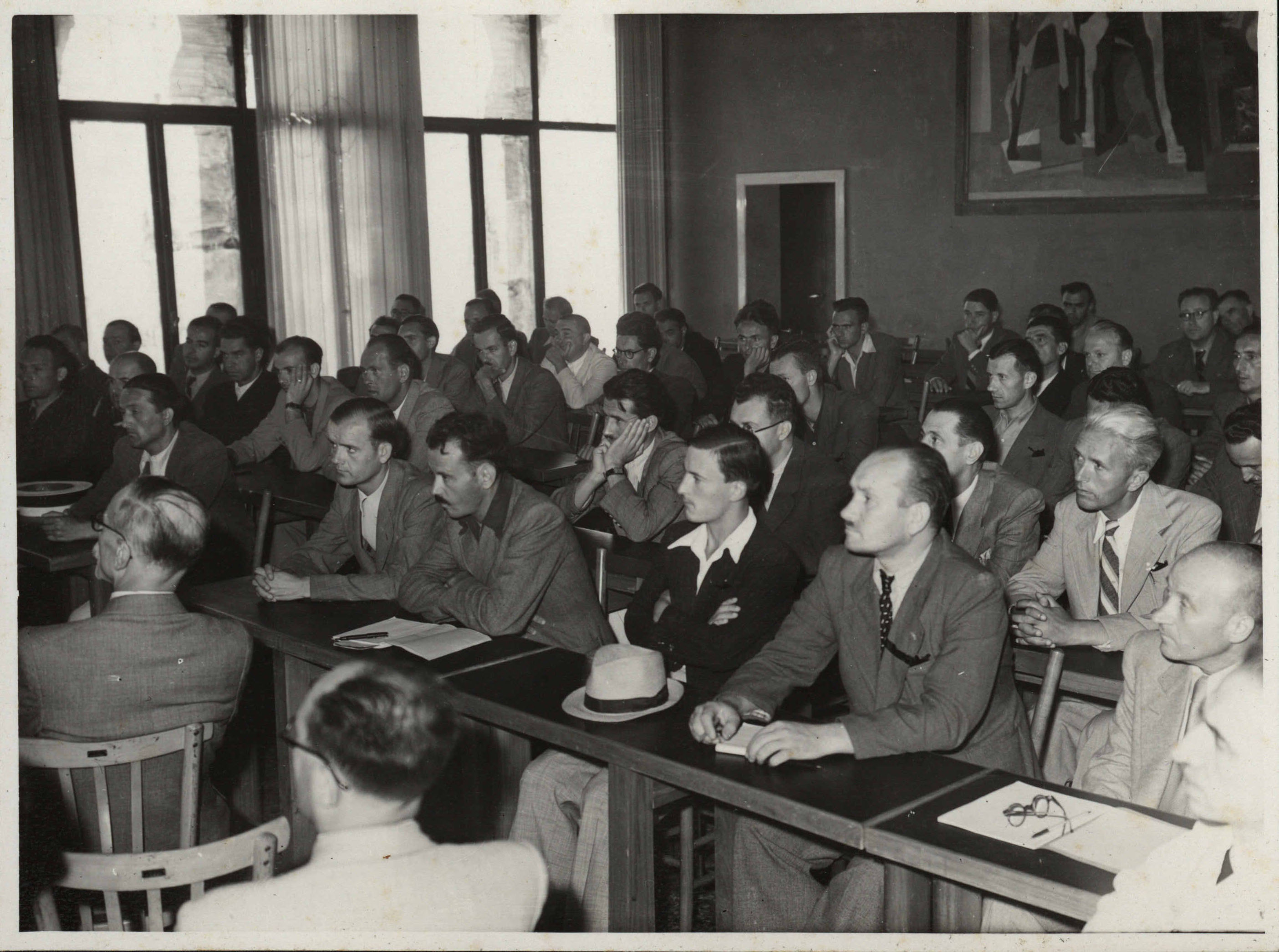 La prima lezione del corso estivo di lingua e cultura italiana agli allievi dalmati tenuta in Aula Berengo, al primo piano di Ca' Foscari.